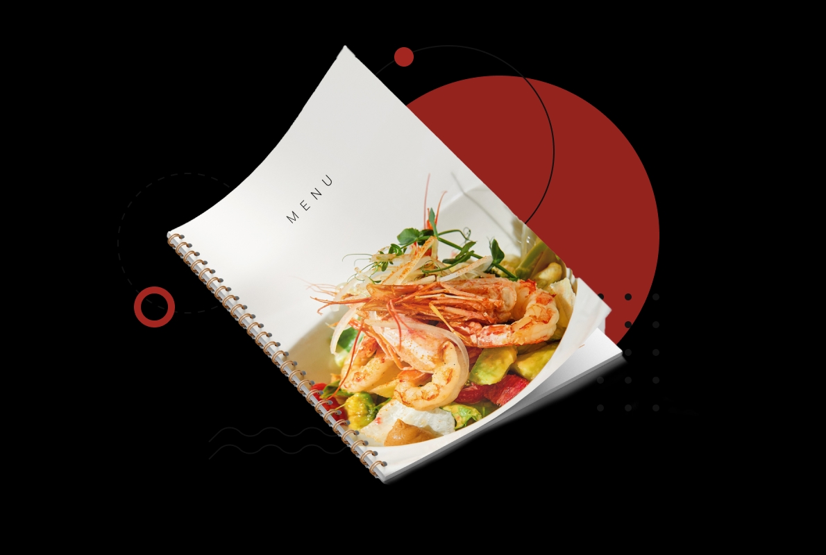 Menu, karty win, pudełka na wynos, etykiety i ulotki. Spójne materiały dla Twojej restauracji.